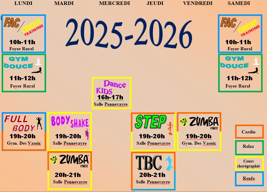 Julien pour le Circuit Training, FAC, STEP, TBC et Gym douce (avec ballon tous les derniers samedis et lundis du mois) et FULL BODY